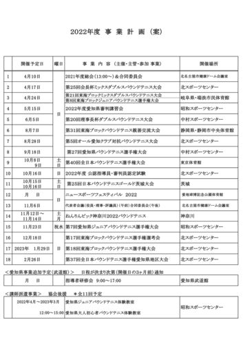 令和4年度 愛知県協会と名古屋市協会の行事予定をお知らせします。 名古屋市協会は、年間を通して「スポーツ広場」、「ジュニア教室&週末練習会」があります。 その他、市体育館選手権(5月4日)、市長杯シングルス大会(7月17日)、市民スポーツ祭(8月7日…