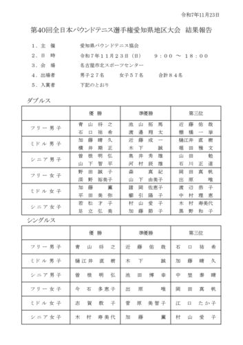 11月23日北スポーツセンターにて開催の第40回全日本バウンドテニス選手権愛知県地区大会結果は以下の通りです。